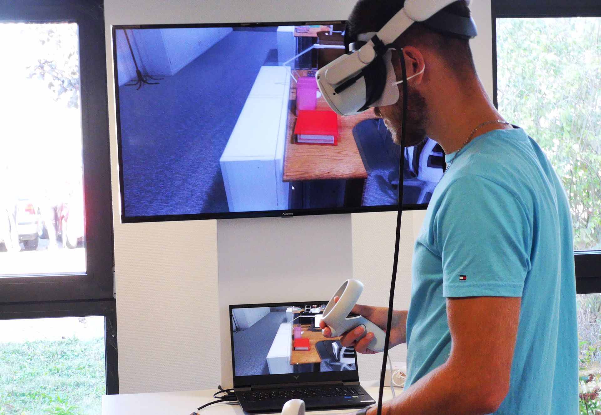PC ou une tablette par casque permet de visualiser en direct le retour des casques VR et de suivre l’expérience vécue par les participants.