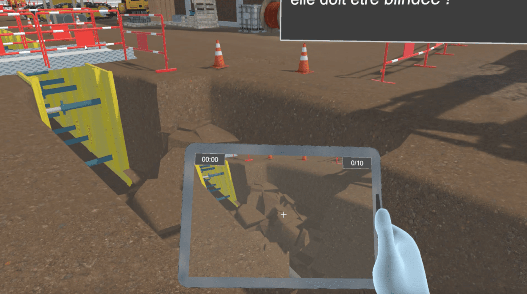 Renforcez la prévention des risques liés aux travaux en tranchée grâce à notre chasse aux risques en réalité virtuelle. Vos équipes évoluent dans un chantier immersif et doivent identifier les situations dangereuses : blindage absent ou inadapté, parois instables, circulation d’engins à proximité, accès non sécurisés, réseaux enterrés mal repérés ou défaut de balisage. Cette expérience interactive permet de développer l’analyse des risques spécifiques aux interventions en tranchée, d’anticiper les dangers d’ensevelissement et de sécuriser les phases critiques du chantier. Parce que les travaux en tranchée présentent des risques graves et souvent sous-estimés, l’immersion en réalité virtuelle favorise une prise de conscience forte et un ancrage durable des bonnes pratiques.