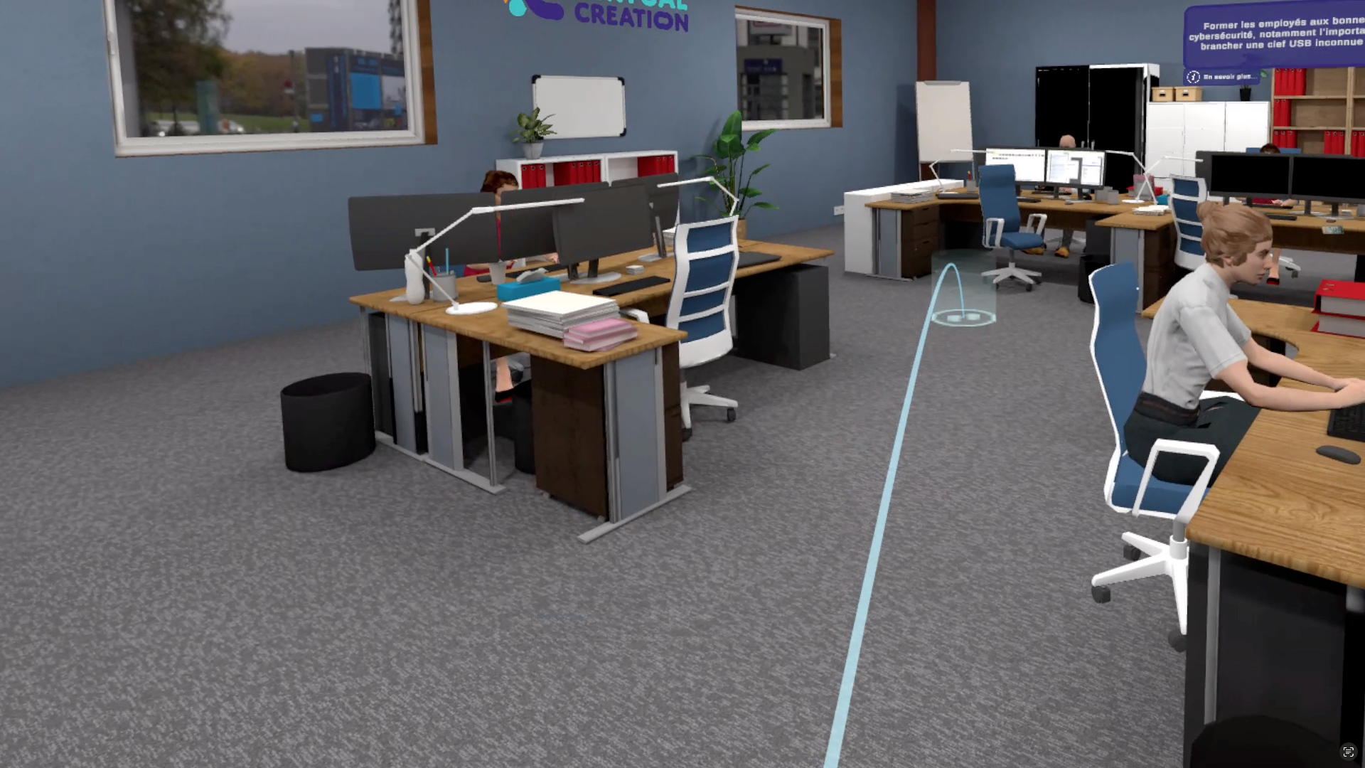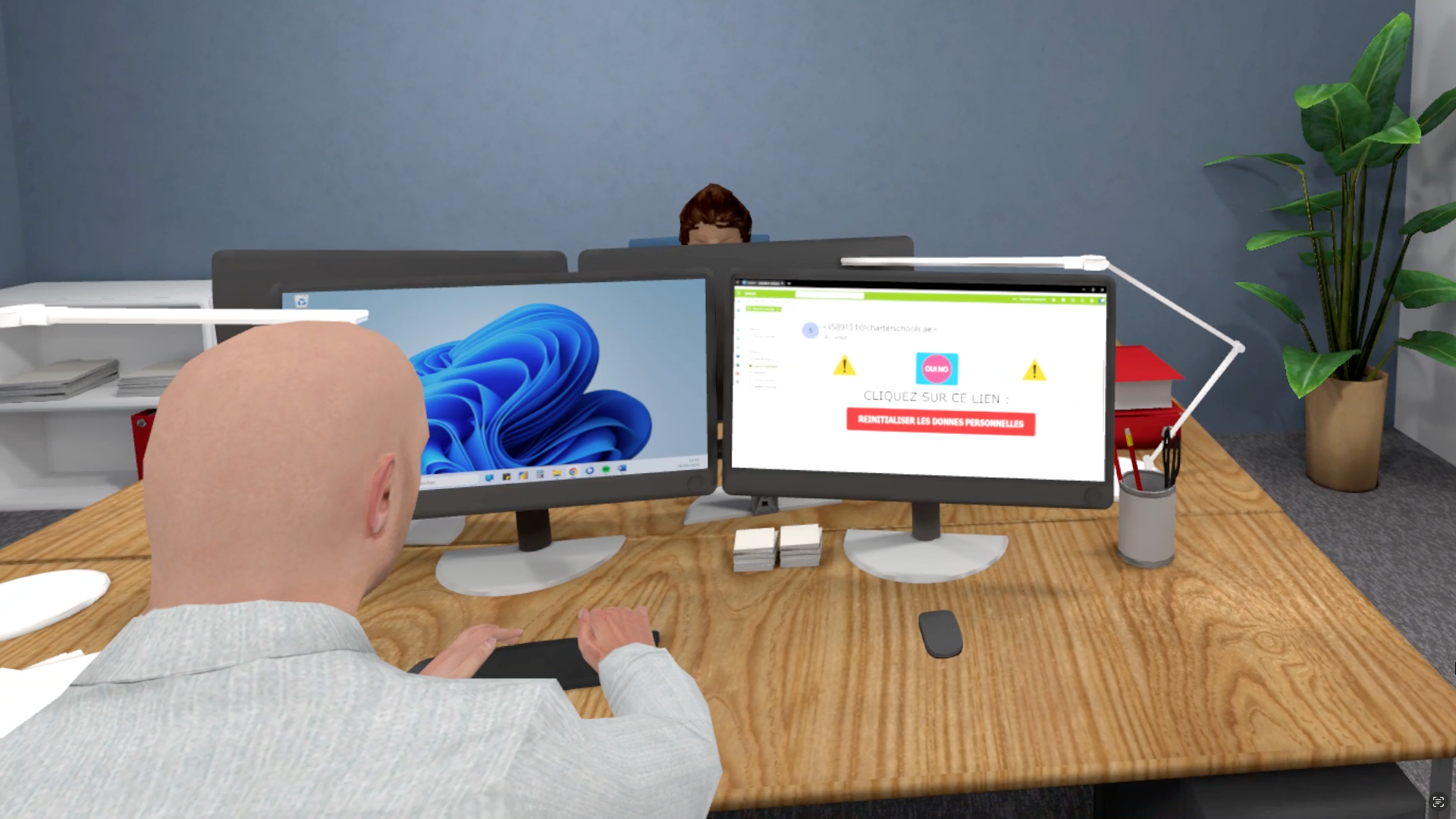 Cette chasse aux risques VR s’inscrit dans la politique de sécurité de l’entreprise, dans une démarche de prévention et de réduction des accidents du travail. Les apprenants sont immergés dans un bureau virtuel construit à partir de situations accidentogènes réelles. Mettez-les en situation pour identifier visuellement les risques en cybersécurité.