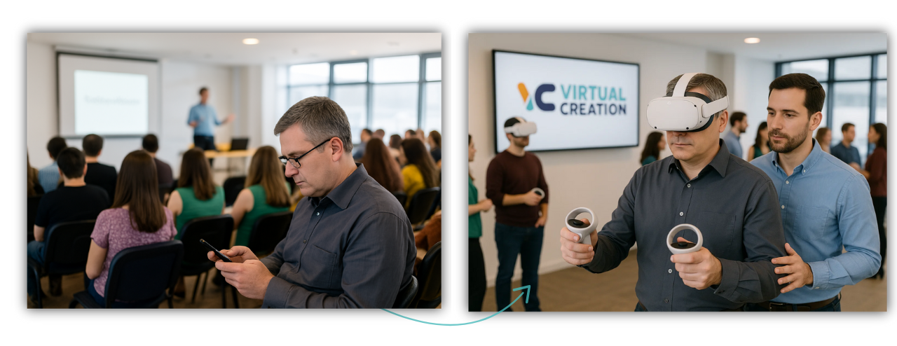 En VR, l’apprenant vit les situations, les ressent et les expérimente activement. En immersion, l’erreur devient un outil d’apprentissage, pas une sanction. Résultat : des réflexes renforcés.